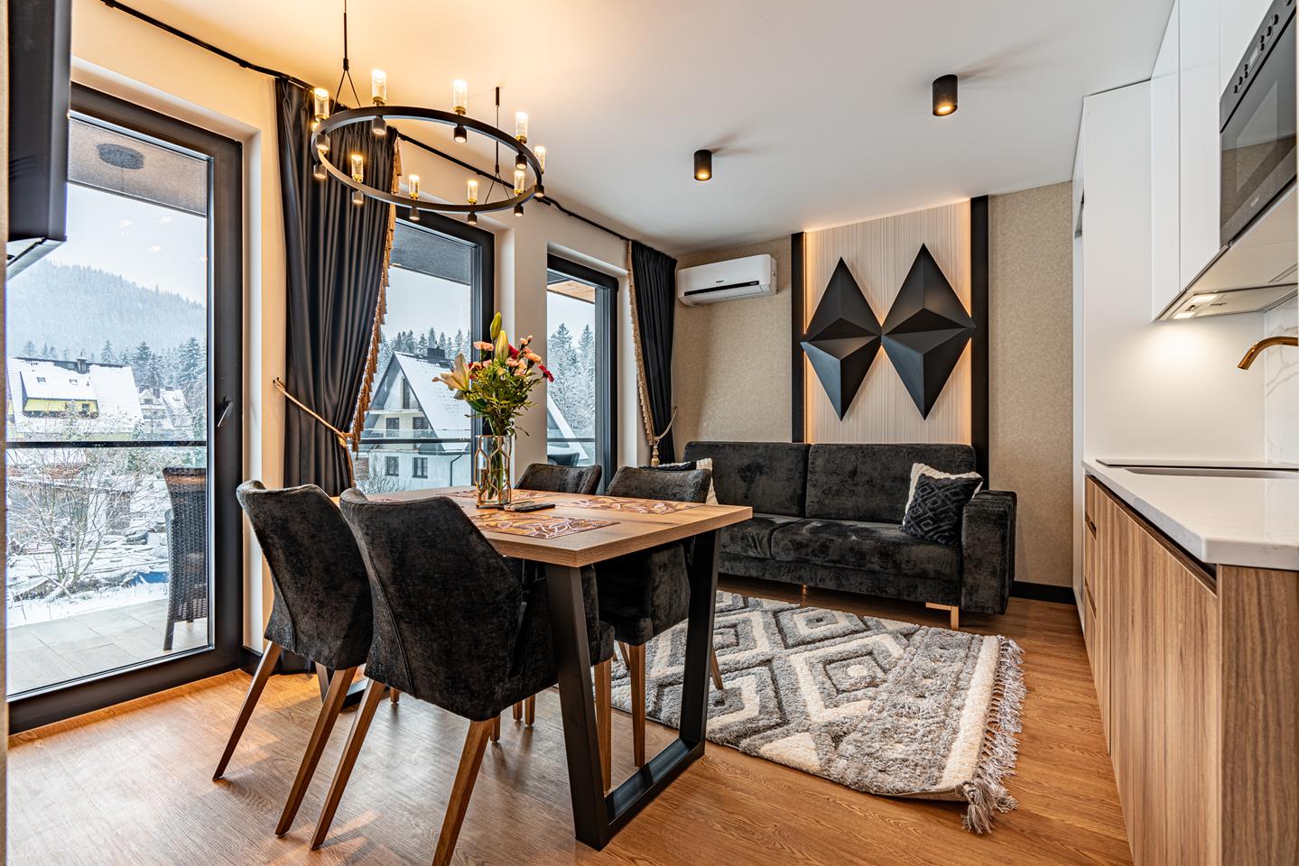 Góry na wyciągnięcie ręki? Podziwiaj zimowy pejzaż lub ciesz się jesiennym spektaklem barw natury. Luksusowy aparthotel, z widokiem na panoramę Tatr, to niezapomniana przygoda, dla całej rodziny
